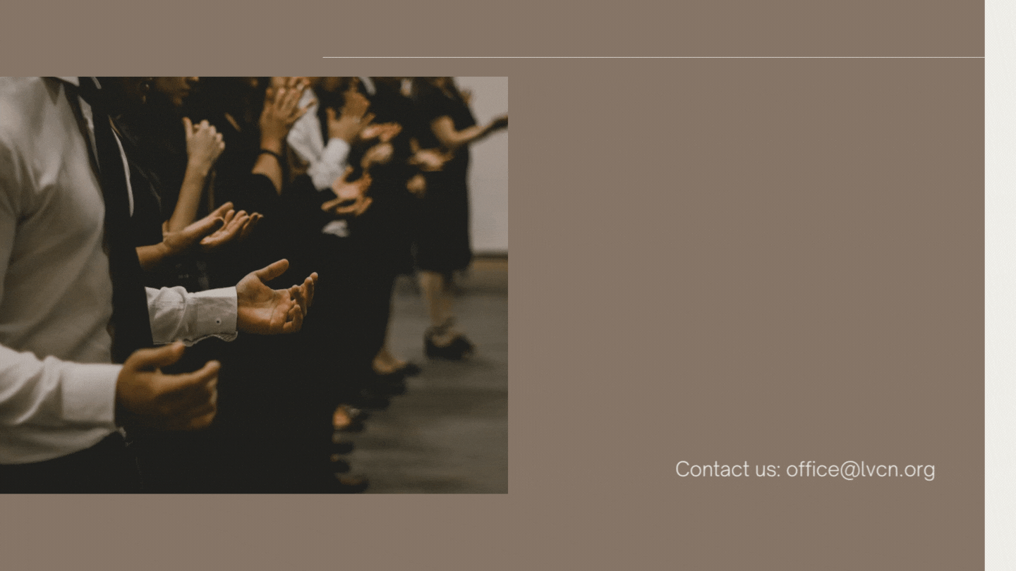 At LVCN, we are a group of people in a family relationship, doing life together. We teach, learn, laugh, cry, eat, and play together. In doing so, the gospel gets lived out within our relationships. As a family we are one church, but we have many parts: each member serving his/her own role within the church. LVCN is a place where we put into practice that Fruit of the Spirit which God has placed within us. We welcome you to also be a unique part of our church family to love God, love people, and serve both.